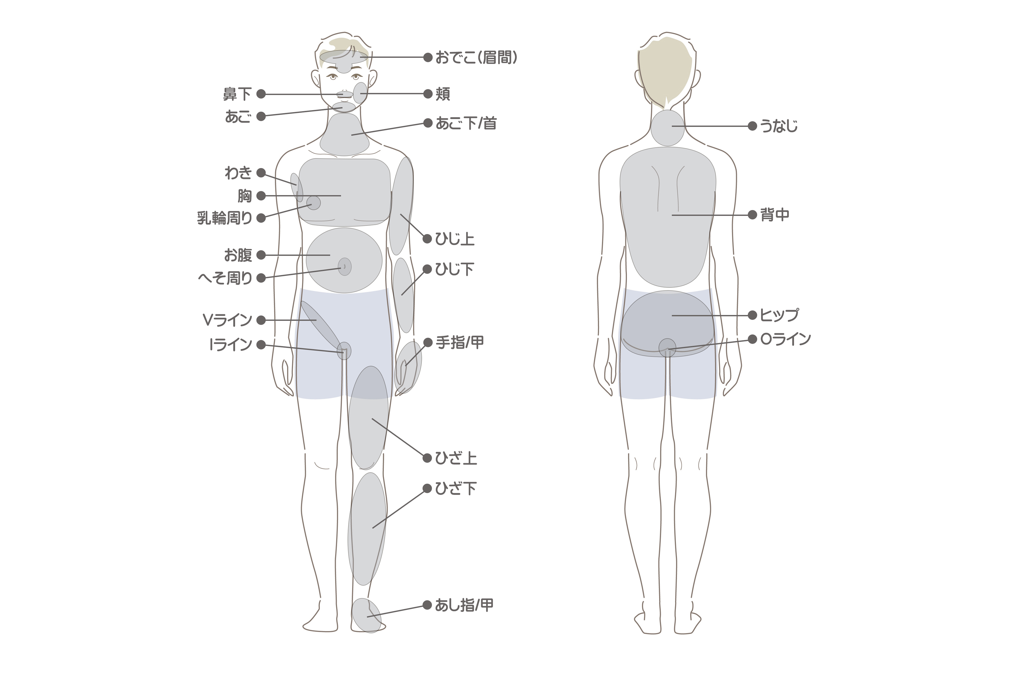毛周期に合わせて1ヵ月に1度の照射。ヒゲやワキ、VIOなどの太い毛にもしっかりと対応いたします。