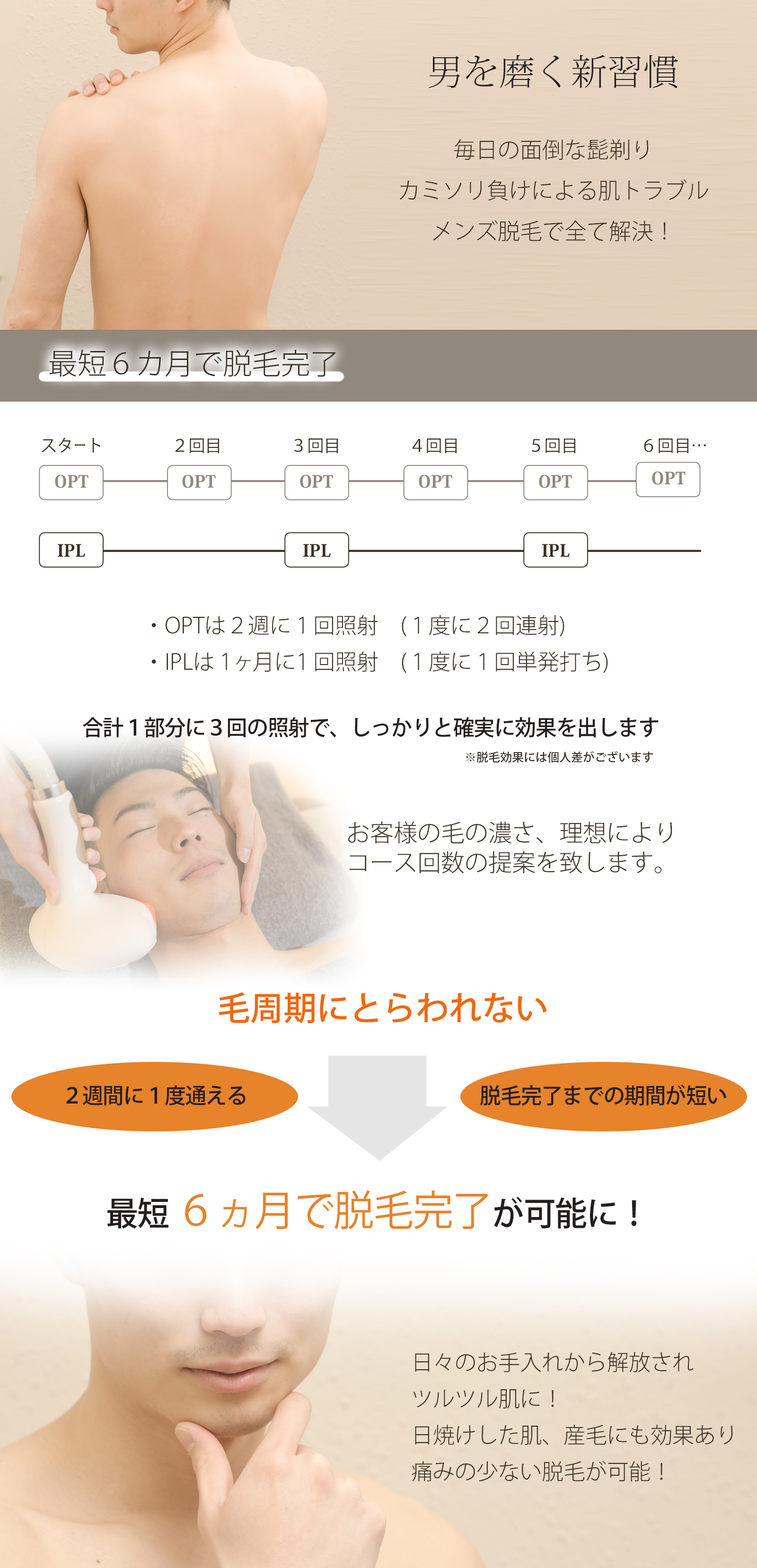 ムダ毛に対する悩みを抱えた全ての男性へのお手伝いをさせていただきます。